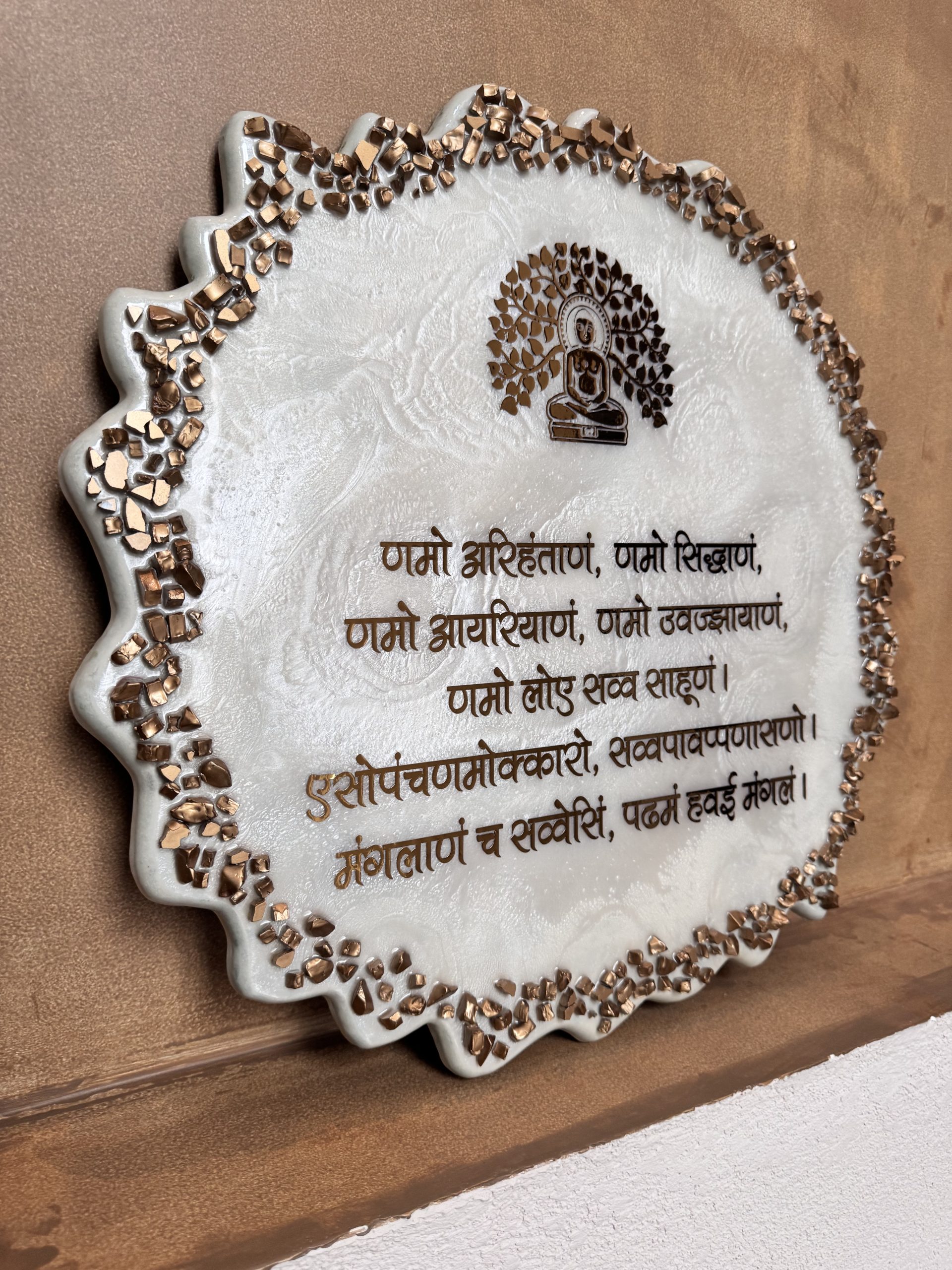 Embrace the harmony of the universe with the Celestial Jain Mandala. This masterpiece blends the ancient art of sacred geometry with modern resin craftsmanship. A Mandala represents the “Circle of Life” and “Total Completeness,” and when combined with Jain spiritual symbols, it becomes a powerful source of positive energy and focus for your home.