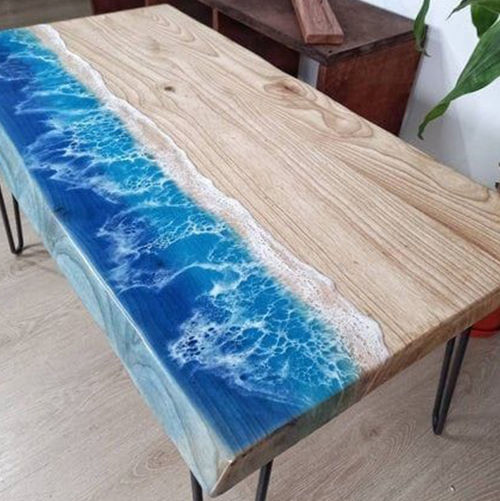 Capture the calm of coastal waves with the Shoreline Serenity Table. Designed to mimic the meeting of sand and sea, this handcrafted center table features a soft natural wood finish alongside an incredibly lifelike resin ocean wave effect. From foamy crests to deep aqua hues, it brings the tranquil rhythm of the beach right into your space. Supported by sleek metal legs, it’s the perfect balance of artistic beauty and everyday function.